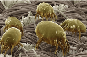 אלרגיה לאבק. אבק יכול להכיל אלרגנים שונים (חלקיקי מזון, קשקשים של בעלי חיים, נבגי פטריות), אך האלרגן העיקרי הוא קרדית אבק המיקרוסקופית. קרדית אבק ניזונה מחלקיקים של עור אנושי. היא חיה ומתרבה לרוב במזרני מיטה, כריות, שמיכות, צעצועים רכים, שטיחים ווילונות חדרי השינה. מבנה החלבון של קרדית אבק קרוב למבנה החלבון של טפילים (לדוגמה, תולעים). שיבוש של המערכת החיסונית מוביל לייצור של אותם נוגדנים נגד קרדית אבק כמו נגד טפילים. כתוצאה מכך מתפתחת תגובה אלרגית